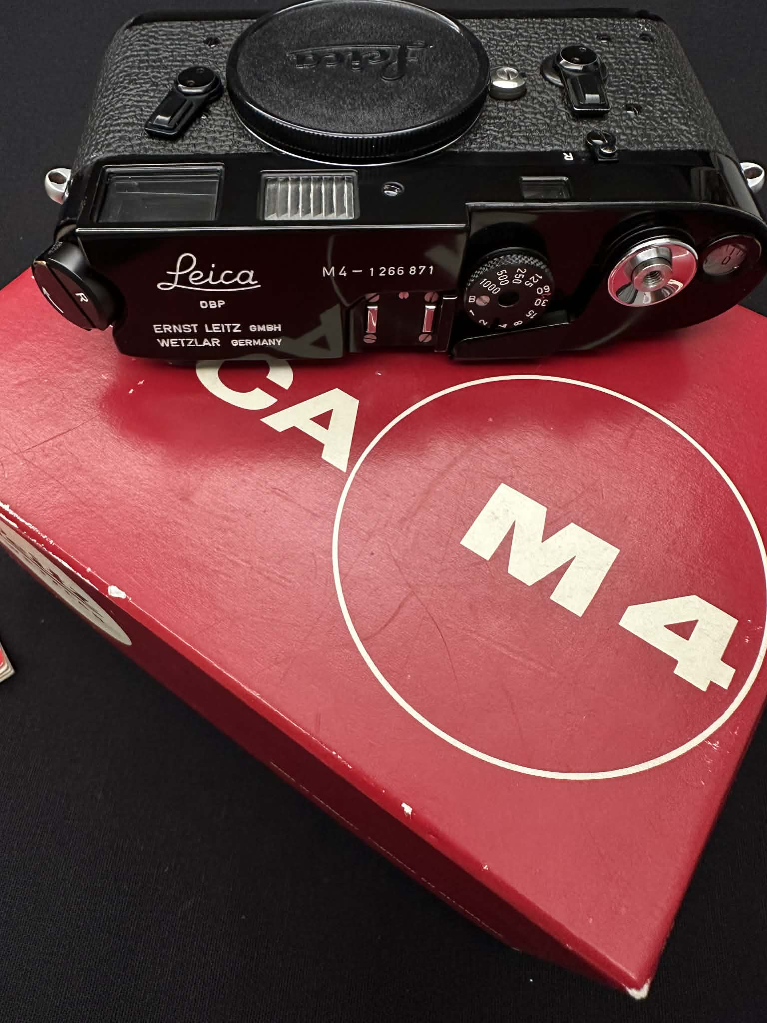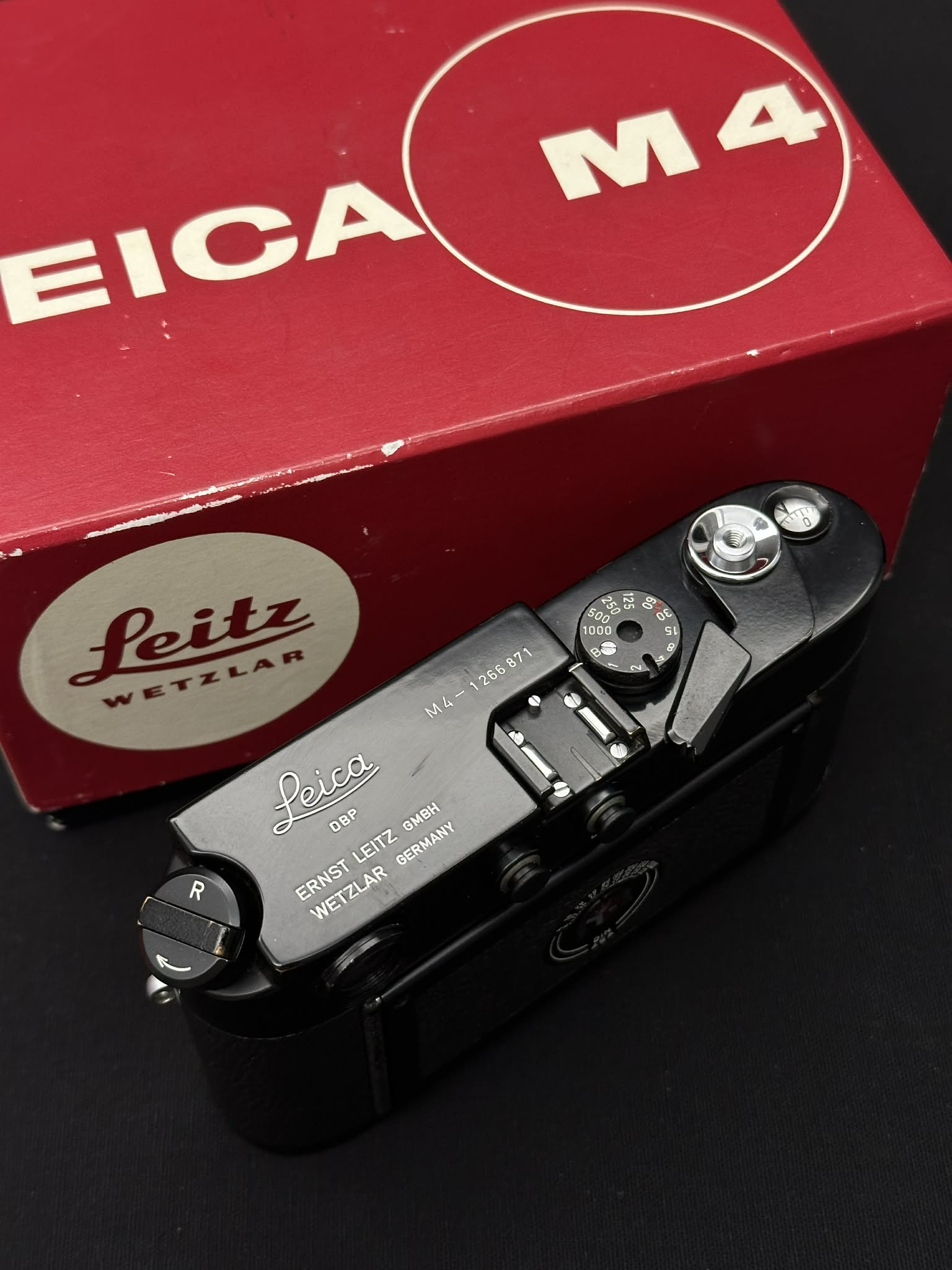Made in Germany S/N: 1266 871 made in 1970 in a batch of “Leica M4 Schwz Lackiert”