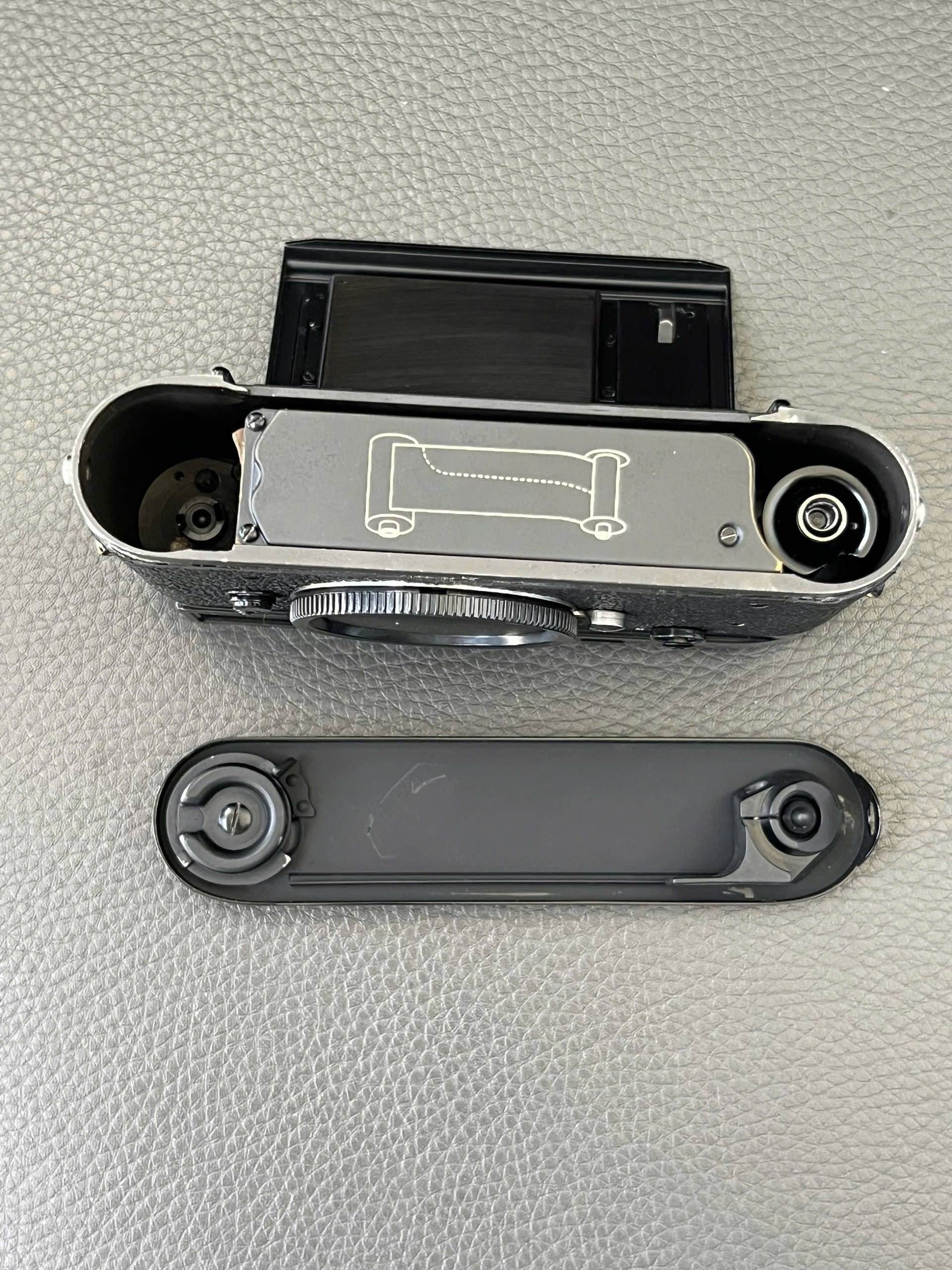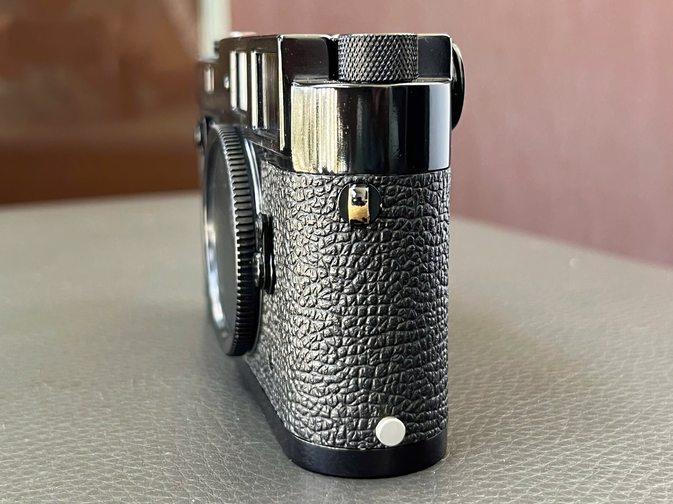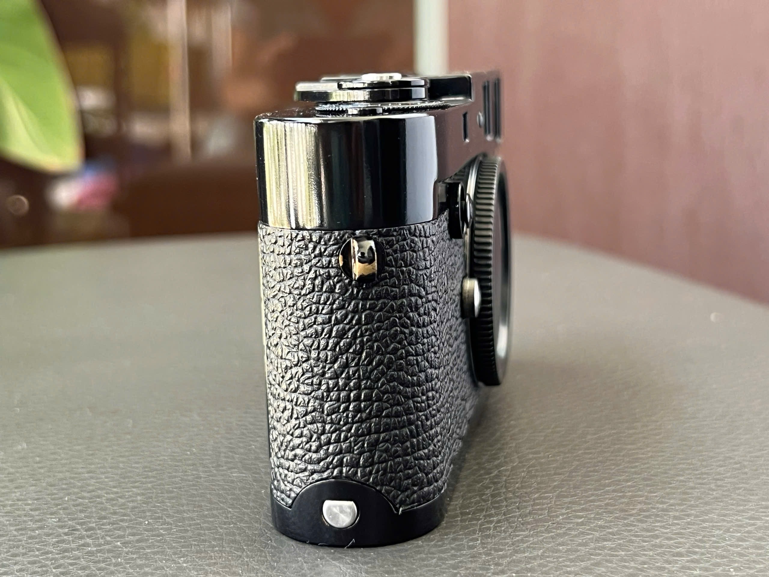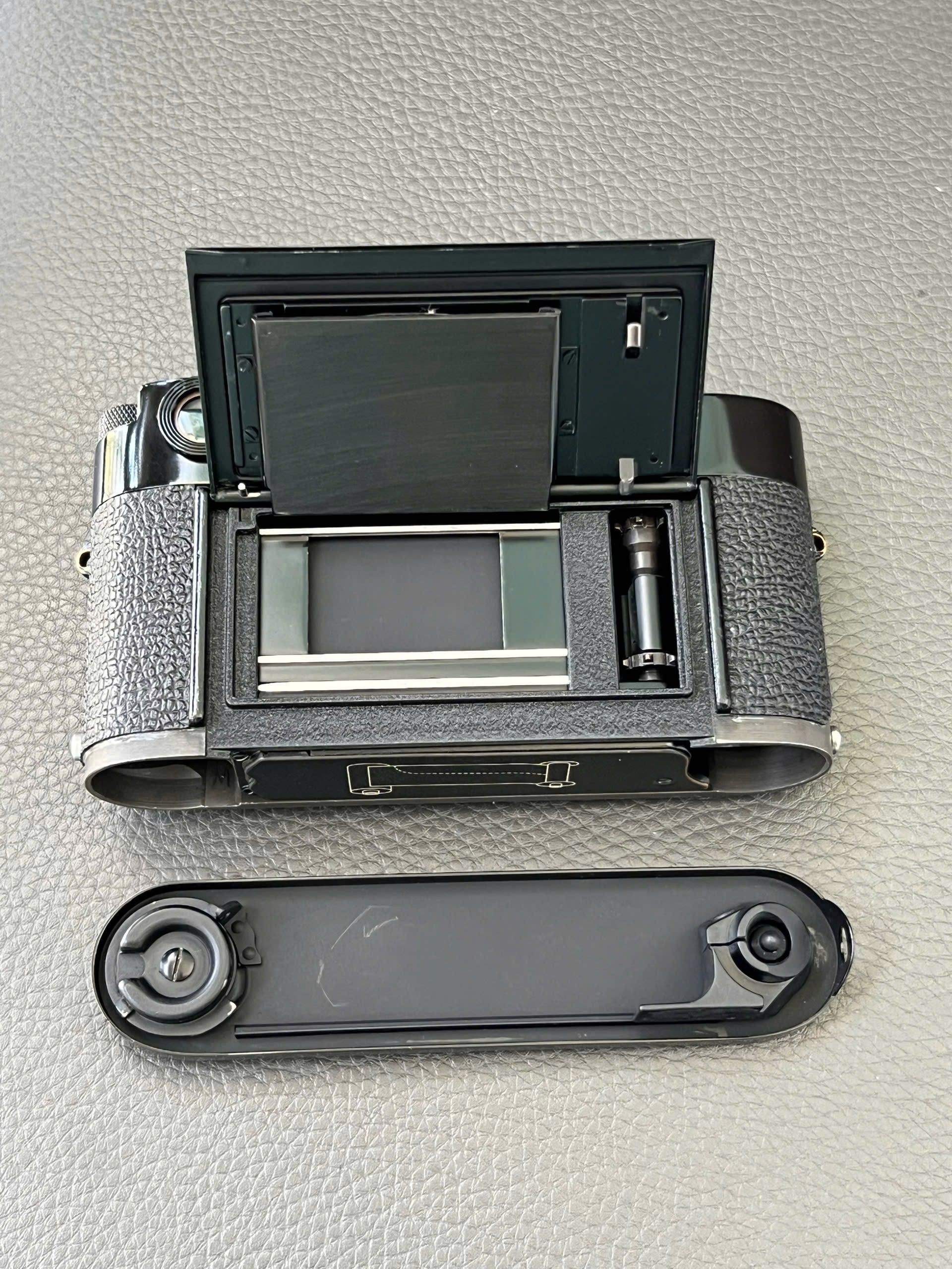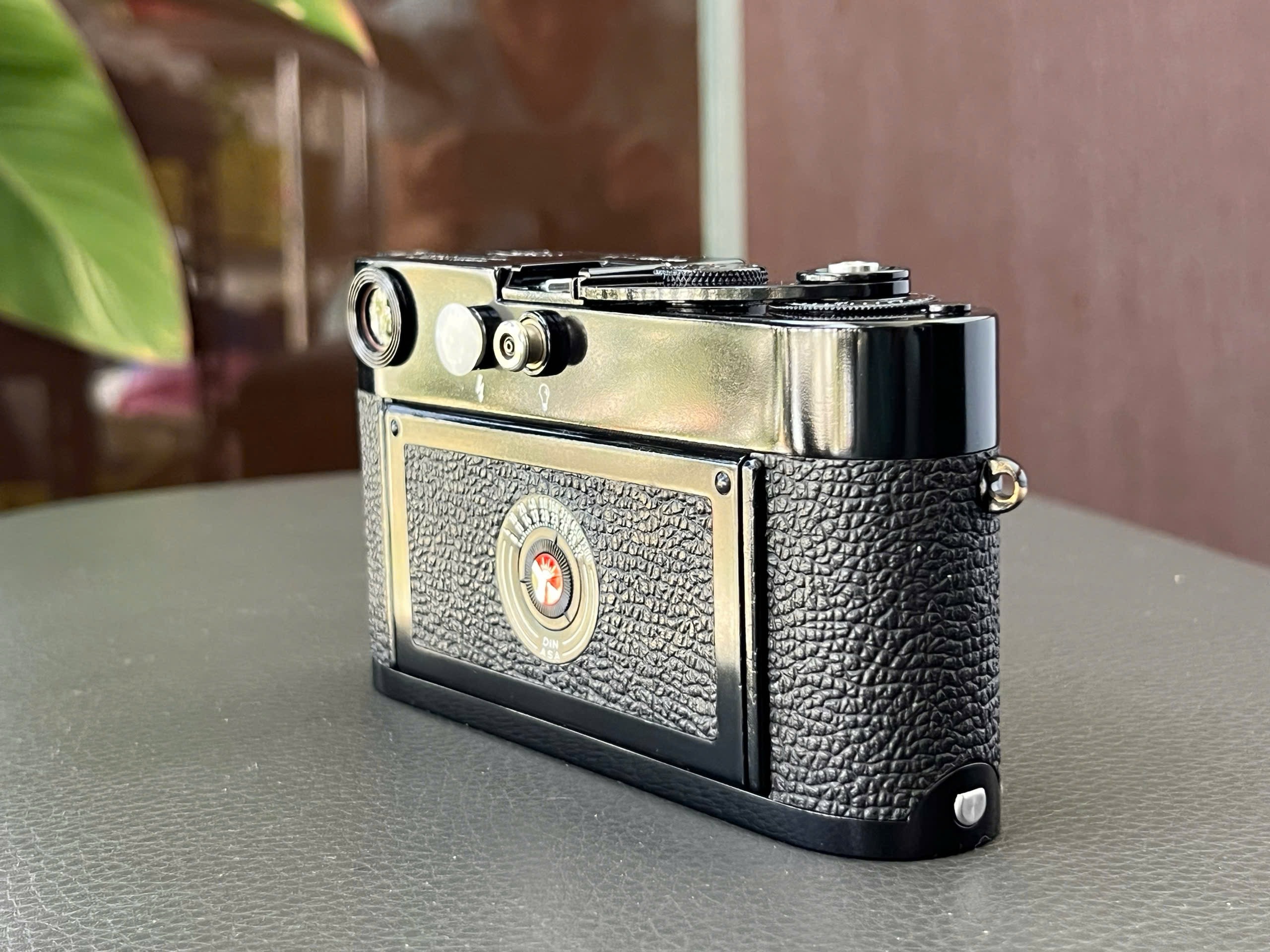 The orignal chrome was tripped down to brass and repaint to Glossy black paint Leica M2. It have never been used after repaint in 2026/01