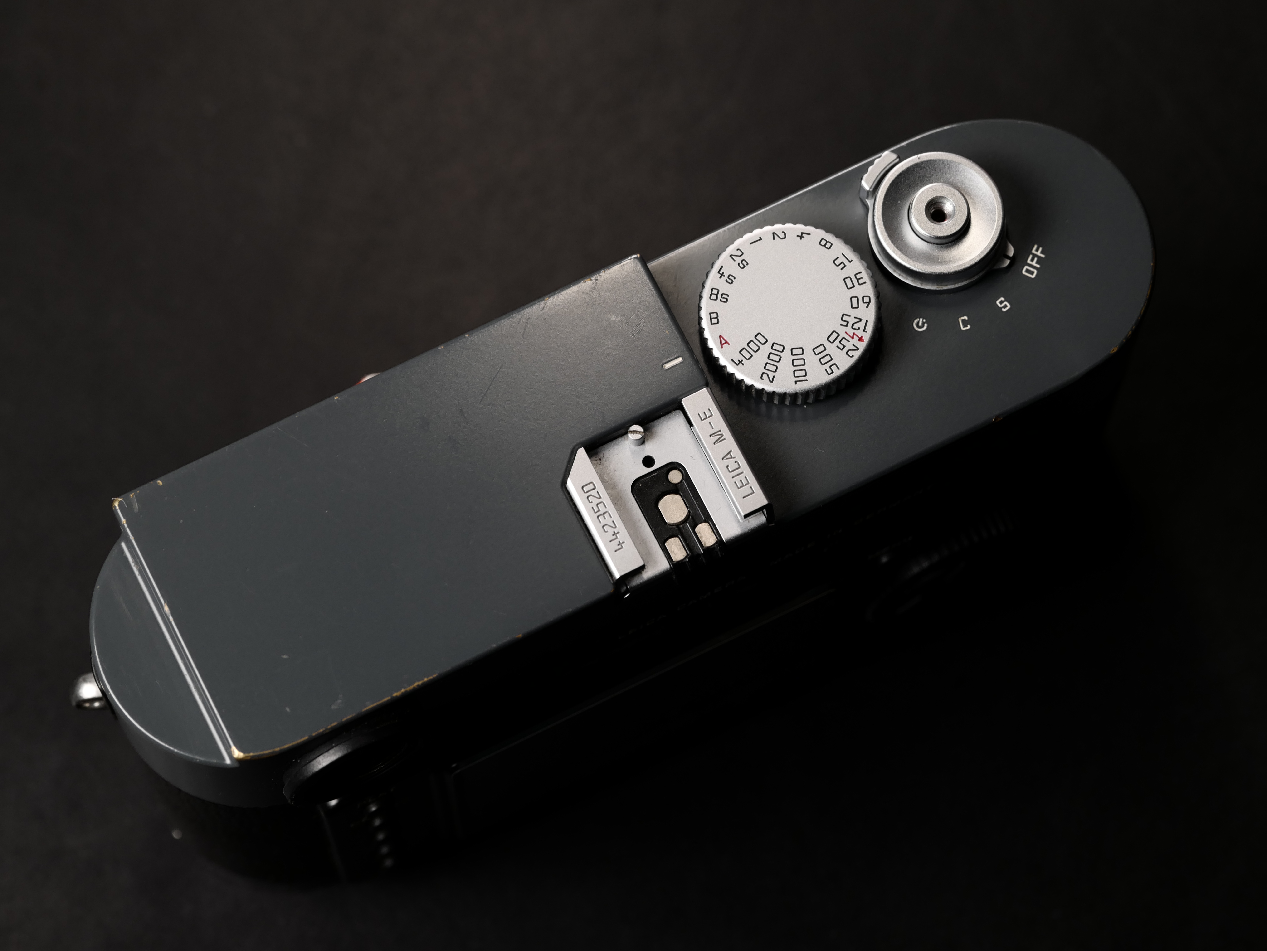 This Leica M-E 220 is in excellent condition with little signs of use. It is having sign of use, and beautiful brass patina at edge. The M-E 220 have Germany industry grey paint which is a part of history – since we have seen in Leica IIIC “Grey”. It have a small dent at the back but barely noticeable.